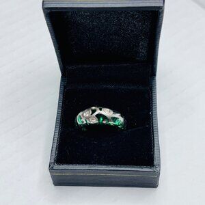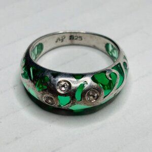 Vintage Sterling Silver Green Glass and Diamonique Stone Ring Size 8