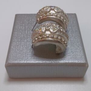 Vintage Sterling Silver Half Hoop Earrings Twisted Rope Heart Crystal Accents
