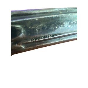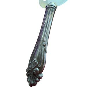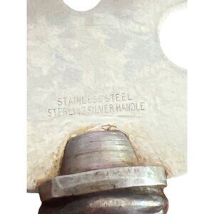 This vintage pie server features a stainless steel blade and a sterling silver ornate handle, offering durability and elegance for serving baked goods.