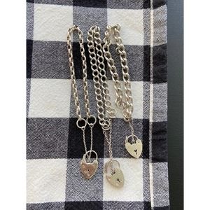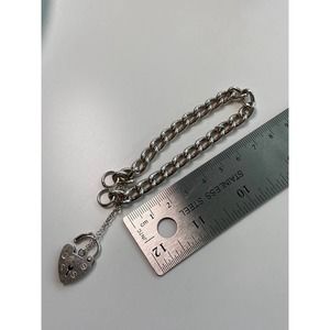 Vintage Sterling Silver Heart Clasp Lock Padlock Charm Bracelet