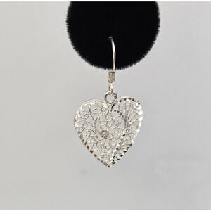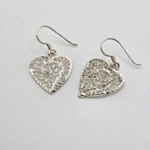 Vintage Sterling Silver Heart Earrings Diamond Cut Open Work Ornate Boho Classic
