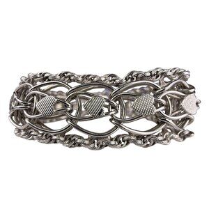 Vintage Sterling Silver Heart Motif Chain Bracelet Intricate Clasp Oval Design