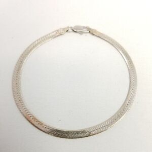 Vintage Sterling Silver Herringbone Flat Chain Bracelet, Made in Italy, Estate
