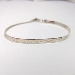 Vintage Sterling Silver Herringbone Flat Chain Bracelet, Made in Italy, Milor