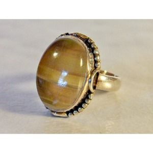 Vintage Sterling Silver Large Oval Banded Agate Ring , Ring Size 8