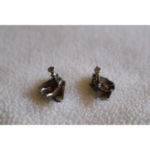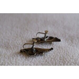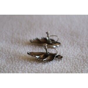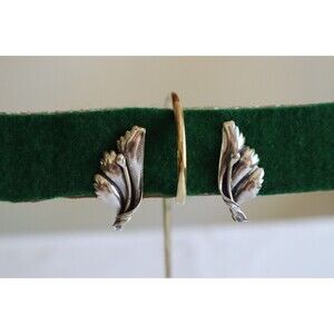 Vintage Sterling Silver Leaf Flower Petal Swirl Screw Back Earrings 1.25"