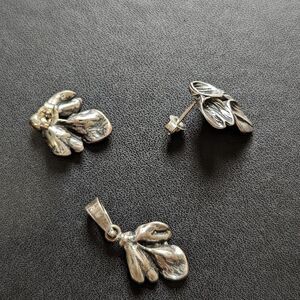 Vintage Sterling Silver Leaf Shape Pendant and Earrings Set