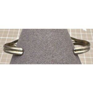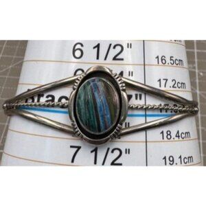 Vintage Sterling Silver Leonard Nez Navajo Cuff Bracelet Rainbow Calsilica Cente