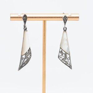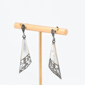 Vintage Sterling Silver MOP Marcasite Dangle Stud Earrings