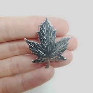 Vintage Sterling Silver Mapel Leaf Shape Brooch, BMCo Maker, Etched Lapel Pin