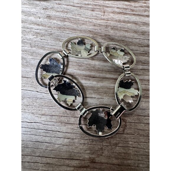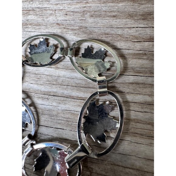 Vintage Sterling Silver Maple Leaf Bracelet Oval Links Engraved Design