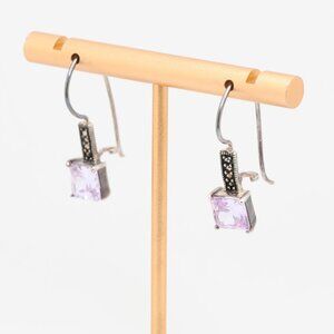 Vintage Sterling Silver Marcasite CZ Fish Hook Earrings