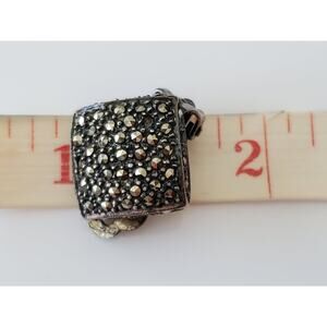 Please see all pictures as they are a part of the description. This item is in it’s original patina leaving it to your discretion. Depending on your own taste, you can either polish it or keep it in the same condition. Note, there are a couple missing marcasites but it is barely noticeable.