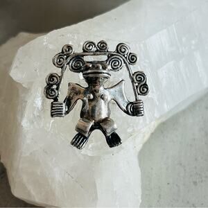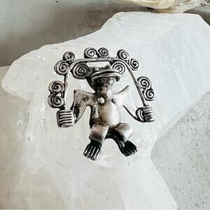Vintage Sterling Silver Mesoamerican Deity Pendant