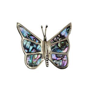 Vintage - Sterling Silver Mexico Butterfly Brooch Pin Abalone Inlay