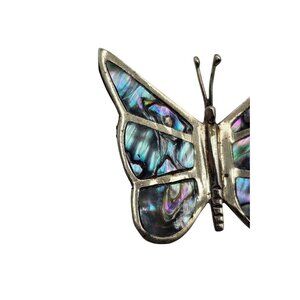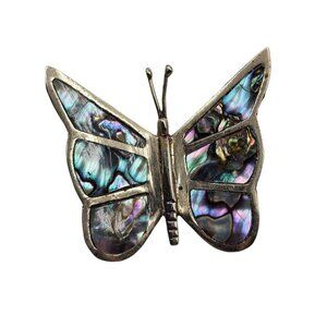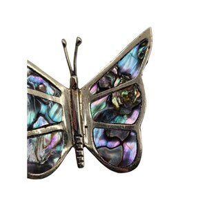 Vintage Sterling Silver Mexico Butterfly Brooch Pin Abalone Inlay
