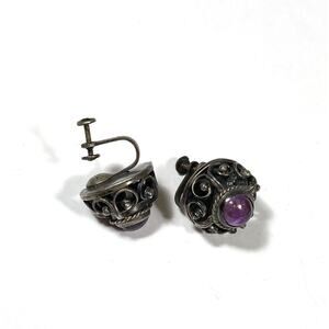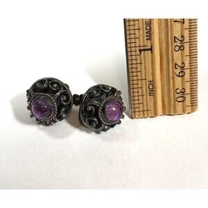 Vintage Sterling Silver Mexico Earrings Screw Backs Amethyst 9.62