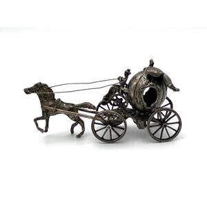 Vintage Sterling Silver Miniature Cinderella's Horse Drawn Pumpkin Carriage 47g