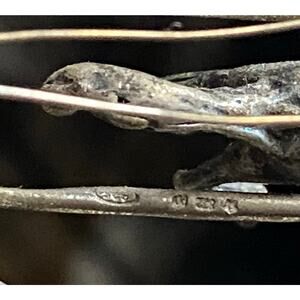 This piece is marked 925, but the stamp isn't very clear (see photo). It also tested as sterling silver. I haven't polished it, leaving it up to your preference.