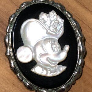 Up for sale is a rare vintage Disney Sterling Silver and Mother of Pearl Minnie Mouse Cameo Brooch Pin. It is marked Sterling on the back. It measures 1 7/8" x 1 1/2" and weighs 15.2 grams.
