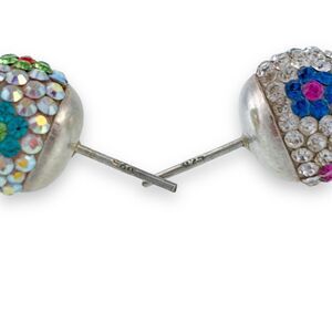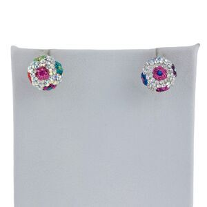 Item Keywords: Vintage, Sterling Silver, 925, Multicolor, Pave Crystal, Flower Motif, Ball Stud Earrings, Vibrant, Lightweight