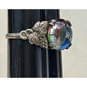 Vintage Sterling Silver Mystic Topaz Ring Sz 8.25 Ornate Fancy Sparkle