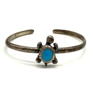 Vintage Sterling Silver NAVAJO Turquoise Turtle Animal Cuff Bracelet 7.9g Nice