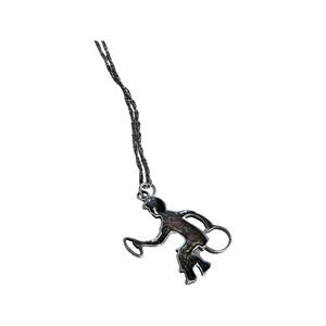 This is a great Native American sterling silver pendant depicting a Hoop Dancer. The chain is silver and Italian, but the pendant is defintely Indian maded. The Hoop Dance is a healing dance representing the never-ending circle of life.