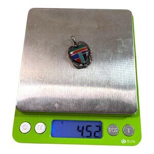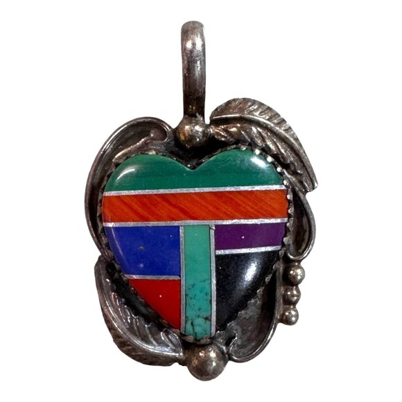 Vintage Sterling Silver Navajo E. Duggin Heart Pendant Inlaid Gemstone SW 4.52g