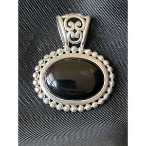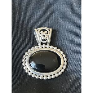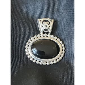 Vintage Sterling Silver & Onyx Oval Pendant By NV Nevada Silver Ornate .96"x1.17