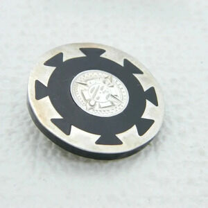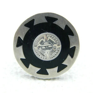 Aztec Sun Pin Inlaid Onyx Sterling Silver 925 Signed R H Eagle Mark VTG Mexico