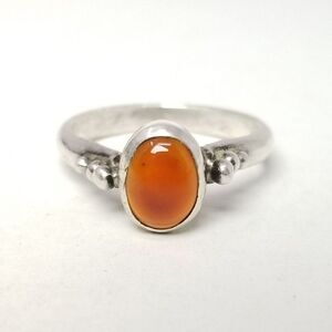 Vintage Sterling Silver Orange Oval Cabochon Stone Ring, Size 6 1/2 Band, Bezel