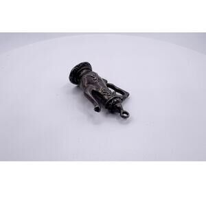 Evoking tales of "One Thousand and One Nights," this highly detailed vintage charm is crafted from solid sterling silver. Shaped like an ornate coffee pot or genie lamp, its dark patina brings out the intricate scrollwork and textures that cover its surface. This is a quality, weighty piece, perfect for a collector of figural or storybook-themed charms. This piece was sourced from the collection of an experienced vintage reseller.
