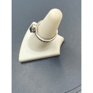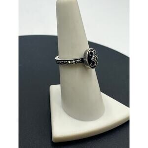 Beautiful sterling silver ring featuring a dramatic black oval centerpiece with sparkling accents.