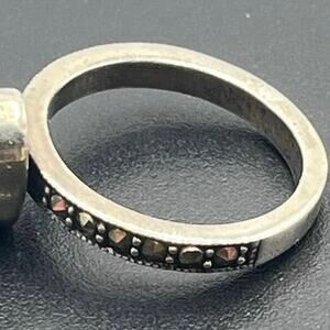 Features: Black oval center with diamond-shaped accent, marcasite-style side stones