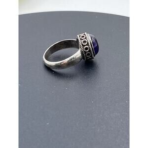 Vintage Sterling Silver Oval Purple Amethyst Cabochon Bezel Set Ring Sz 7.5