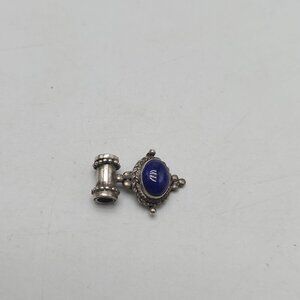 Vintage Sterling Silver Pendant With Blue Lapis Lazuli Gemstone Oval Design