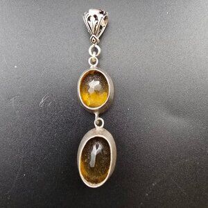 Vintage Sterling Silver Pendant With Double Citrine Gemstones 2" Long