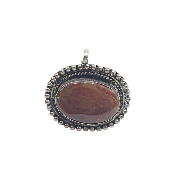 Vintage Sterling Silver Pendant With Oval Brown Agate Stone 9.61g