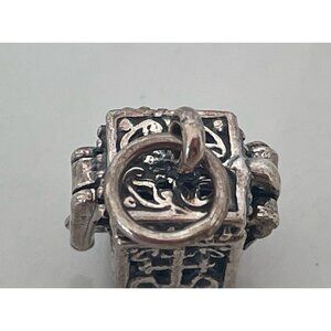 This vintage sterling silver prayer box charm pendant features a beautiful cross design, ideal for Christian faith followers. Its antique appeal makes it a perfect addition to any jewelry collection. I cannot find a mark on this but it does test for sterling silver. It measures 3/8". It is in good vintage condition.