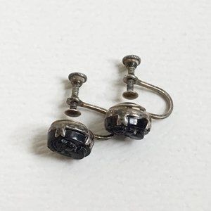 Vintage Sterling Silver Prong Set Jet Black Cameo Portrait Screw Back Earrings