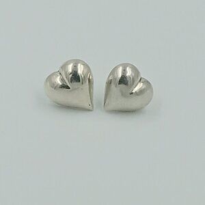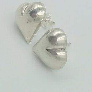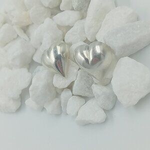 Light Weight Minimalist Vintage Sterling Silver Puff Heart pierced earrings