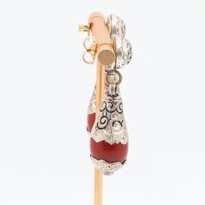 Vintage Sterling Silver Red Coral Teardrop Dangle Earrings