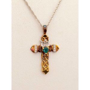 Vintage Sterling Silver Religious Cross Gold Tone Intricate Necklace