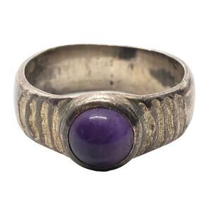 Vintage Sterling Silver Ring 925 Size 6.5 Amethyst Cabochon Band Hallmarked RCK