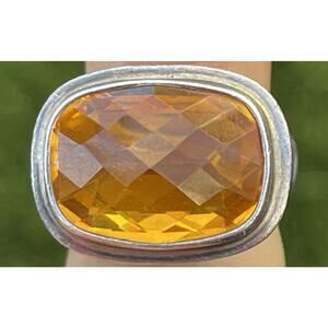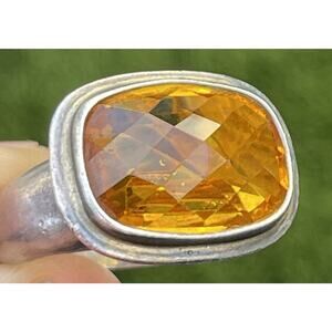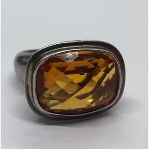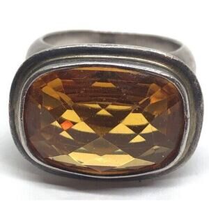 Vintage Sterling Silver Ring 925 Size 7 Heavy Orange Glass 16 Grams