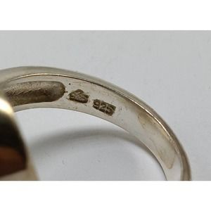 This very unique statement ring made with sterling silver has a type of light blue or lilac agate stone with a Garnet in the center. The front measures 3/4" high and 1/2" wide. No damages or repairs
