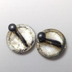Vintage Sterling Silver Round Mother Of Pearl Clip On Screw Back Earrings Signed