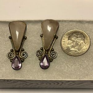 Vintage Sterling Silver Sajen Rose 🌹 Quartz & Amethyst Gemstone Earrings. 1”