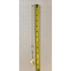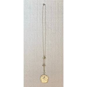 Beautiful vintage sterling silver sand dollar pendant necklace by J&C Ferrara Co. Inc. This necklace features a delicate design with doves, adding a touch of elegance and charm. The necklace measures approximately 19 inches in length, while the pendant is a little over an inch in size. This vintage piece is a wonderful addition to any jewelry collection and is sure to be a conversation starter. Don't miss out on owning this unique and timeless necklace! Perfect for any occasion, this necklace is sure to bring you joy and compliments wherever you go. Treat yourself or surprise someone special with this unforgettable piece!